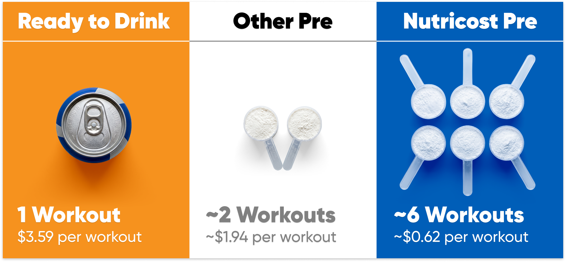 One energy drink costs $3.59. For that same price, Nutricost gets you 6 servings.