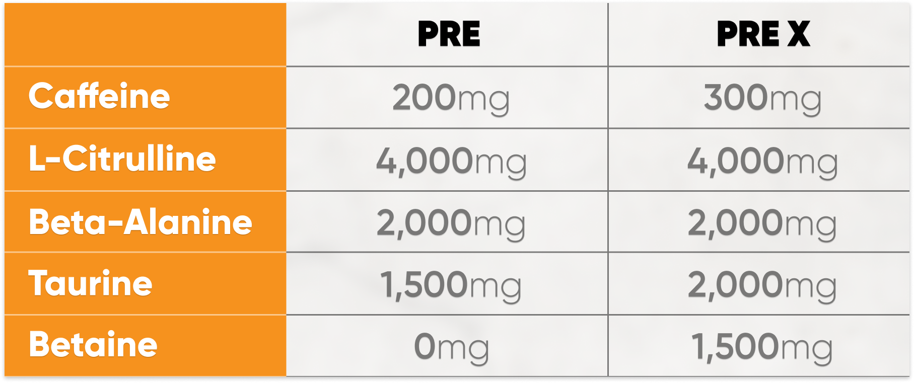 Pre-X amps it up with 300mg of caffeine and higher doses of multiple ingredients across the board. With the same great taste, just more firepower, we’ve dialed it up to an 11 for the sessions where you're going all-in.