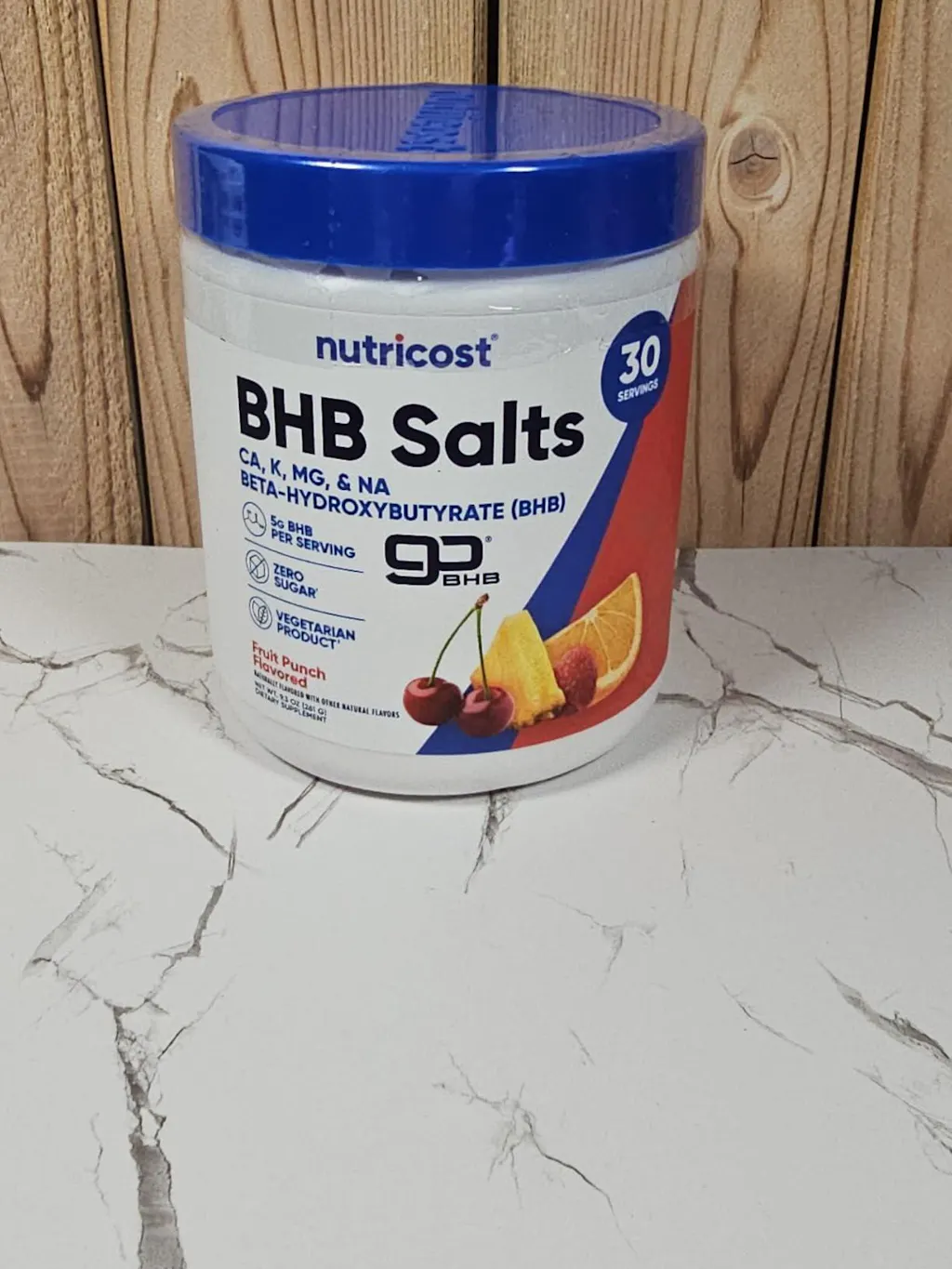 Item: Nutricost BHB Salts Drink Mix (30 Servings, Fruit Punch Flavored) (5G BHB Per Serving) - 0G ToNutricost BHB Salts come in a 9.3 oz bottle, offering thirty servings per container. This product meets GMP standards and is gluten-free and vegetarian, which is great for those with dietary restrictions. Plus, it has zero sugar, which I really appreciate.Loaded with electrolytes, it's perfect for rehydration, especially for those who work outdoors or engage in strenuous workouts. It also contains Beta-hydroxybutyrate (BHB), which I've heard helps provide energy during low-carb diets, although I'm still learning about its benefits.I've found it mixes well in lukewarm water, and I can add ice afterward without any clumping. The taste is decent—it has a fruit punch flavor with a slight vitamin aroma.The price is reasonable for thirty servings; you certainly can't find a drink like this at a convenience store for just over a dollar.